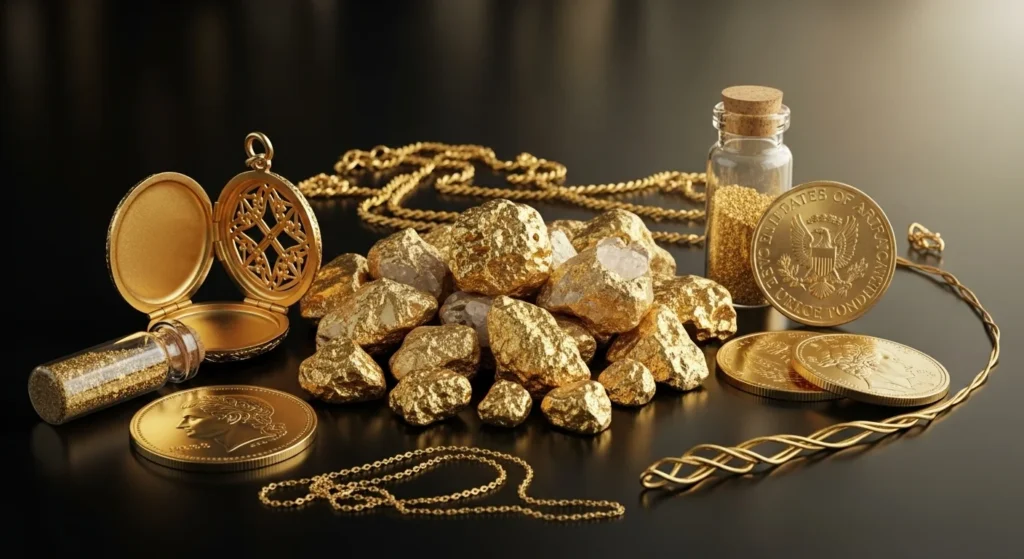 | Bullion | Refined gold in bulk | Investment, reserve | “Gold bullion standard” |