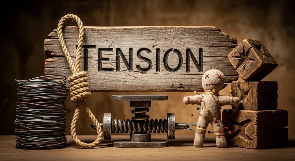 Tension describes a state of mental, emotional, or physical strain. It can mean tight muscles before a race or an awkward silence between two angry friends. It can mean the suspenseful moment before a movie villain strikes. The word comes from the Latin “tendere,” which means “to stretch.” Think of a rubber band pulled tight. That stretch is tension. When people feel tension, they feel pulled in different directions. They feel ready to snap. They feel alert, nervous, and alive all at once.
